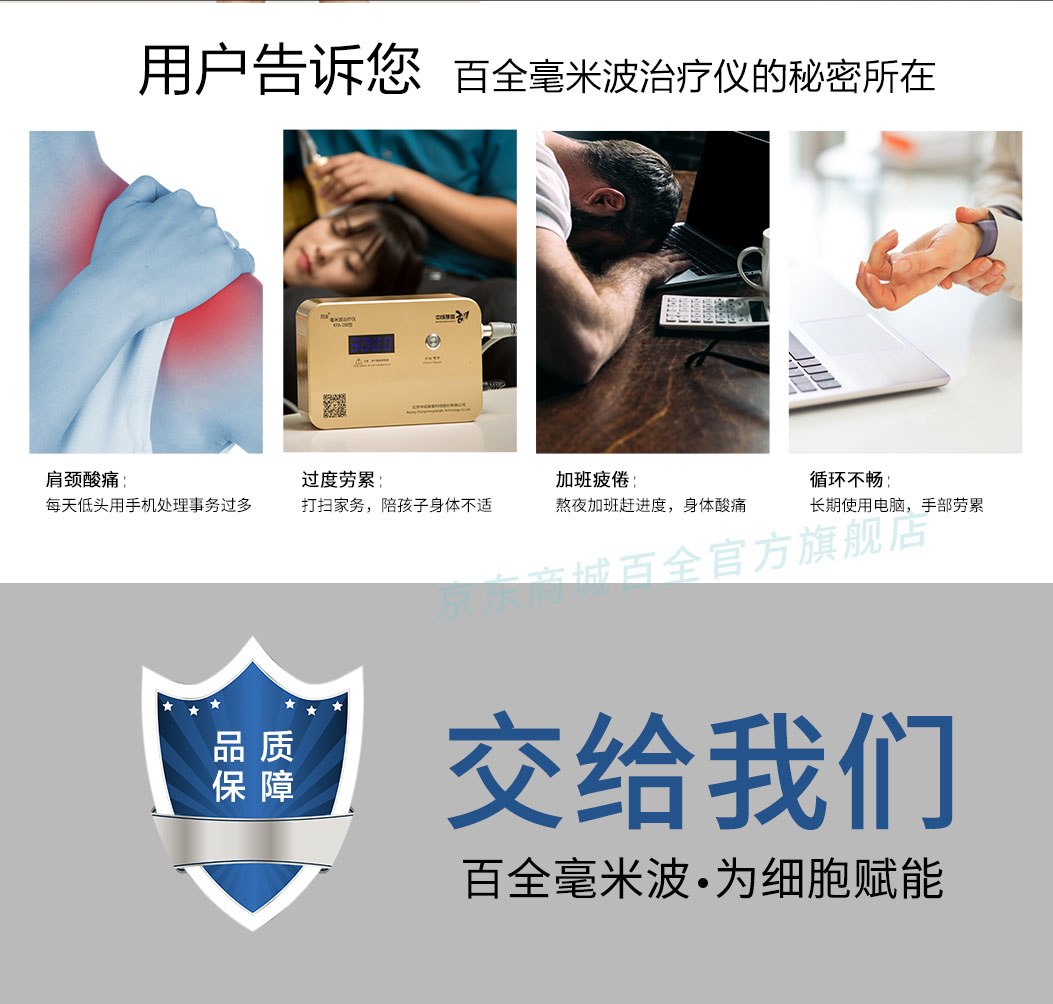 百全毫米波通過改善局部血液循環(huán)對軟組織感染、傷口感染、靜脈炎、無菌性炎癥起到消炎、消腫、止痛、促進血液循環(huán)和組織生長恢復(fù)、傷口愈合的目的