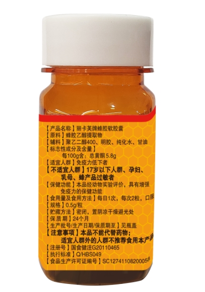 【產(chǎn)品名稱(chēng)】:麗卡芙牌蜂膠軟膠囊 6瓶裝(蜂中珍品)