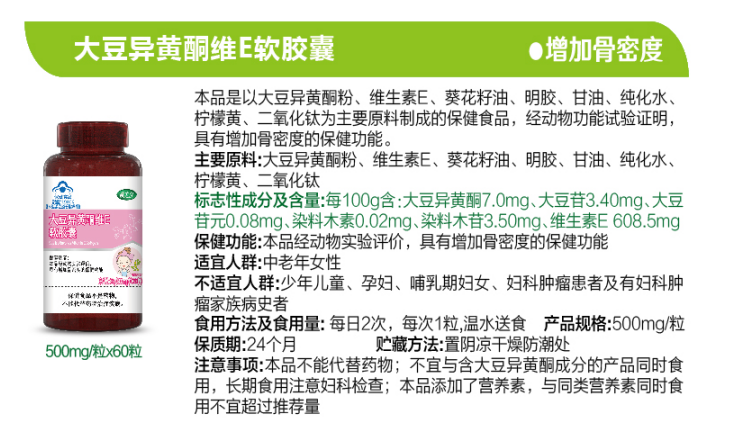 【產(chǎn)品名稱】:大豆異黃酮維E軟膠囊
