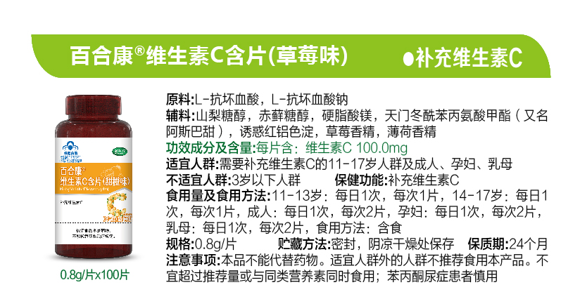 【產(chǎn)品名稱】:百合康維生素C含片(甜橙味)