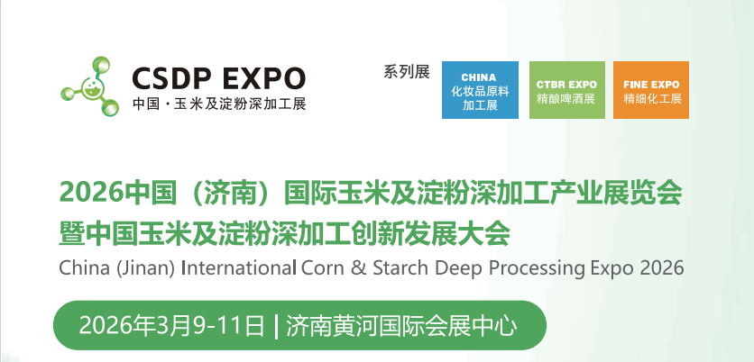 2026中國(濟(jì)南)國際玉米及淀粉深加工產(chǎn)業(yè)展覽會(huì)暨2026中國玉米及淀粉深加工創(chuàng)新發(fā)展大會(huì)將于2026年3月9-11日在濟(jì)南黃河國際會(huì)展中心召開,本次展會(huì)以“創(chuàng)新驅(qū)動(dòng)·綠色智造”為主題,展示玉米及淀粉深加工產(chǎn)業(yè)中的新產(chǎn)品、新技術(shù)、新裝備、新工藝,打造集“展 示、商貿(mào)、學(xué)習(xí)、交流”為一體的全產(chǎn)業(yè)鏈展示平臺(tái)和交流平臺(tái)。