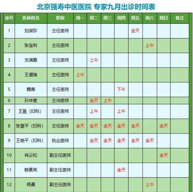 北京強(qiáng)壽中醫(yī)醫(yī)院以弘揚(yáng)中華醫(yī)藥精粹,普及大眾健康為己任。是一所中醫(yī)特色突出、臨床療效顯著的中醫(yī)醫(yī)院。為進(jìn)一步提升醫(yī)療服務(wù)質(zhì)量,完善患者就醫(yī)體驗(yàn),為您的就診提供便利,現(xiàn)整理專家九月出診時間安排如下: