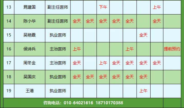 2.如遇特殊情況,個別醫(yī)生出診時間會稍有變動,就診前請聯(lián)系客服確認(rèn),具體排班以當(dāng)天出診為準(zhǔn),敬請諒解~