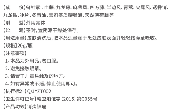 【產(chǎn)品名稱】:瑤山蜂毒膏
