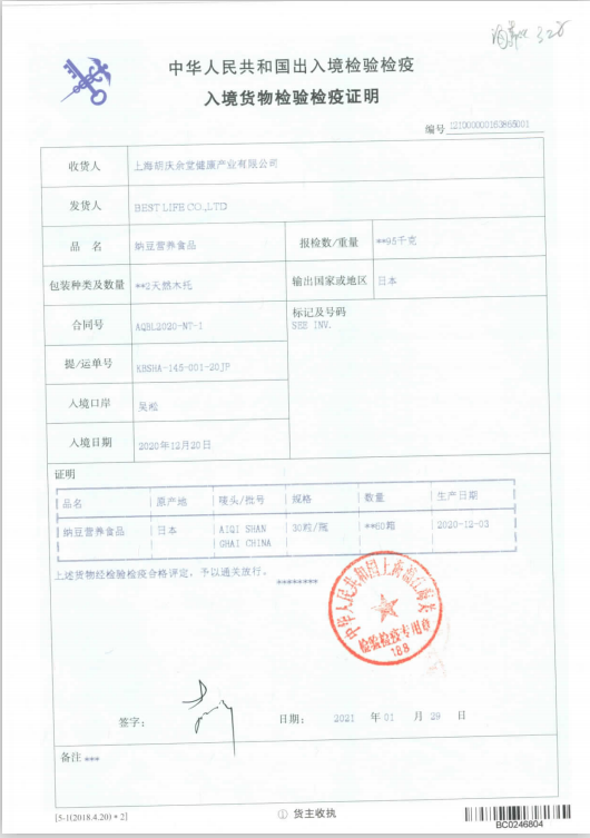 納豆激酶 配料表:葵花籽油、 明膠、納豆粉、甘油、乳化劑(大豆磷脂) 原產(chǎn)國(guó):日本 規(guī)格:14.25g(475mg*30粒) 生產(chǎn)日期: xxxx年xx月xx日 保質(zhì)期(至):xxxx年xx月xx日 貯藏條件:避免陽(yáng)光直射,干燥陰涼處保存 中國(guó)經(jīng)銷商:上海艾啟實(shí)業(yè)有限公司 地址:上海市嘉定區(qū)安亭鎮(zhèn)墨玉南路1080號(hào)5層508室JT181 電話:021-31156853 營(yíng)養(yǎng)成分表 項(xiàng)目 每100g NRV% 能量 2435kJ 29% 蛋白質(zhì) 28.1g 47% 脂肪 40.8g 68% 碳水化合物 25.6g 9% 鈉 47(mg) 2% 每粒含納豆激酶4020FU